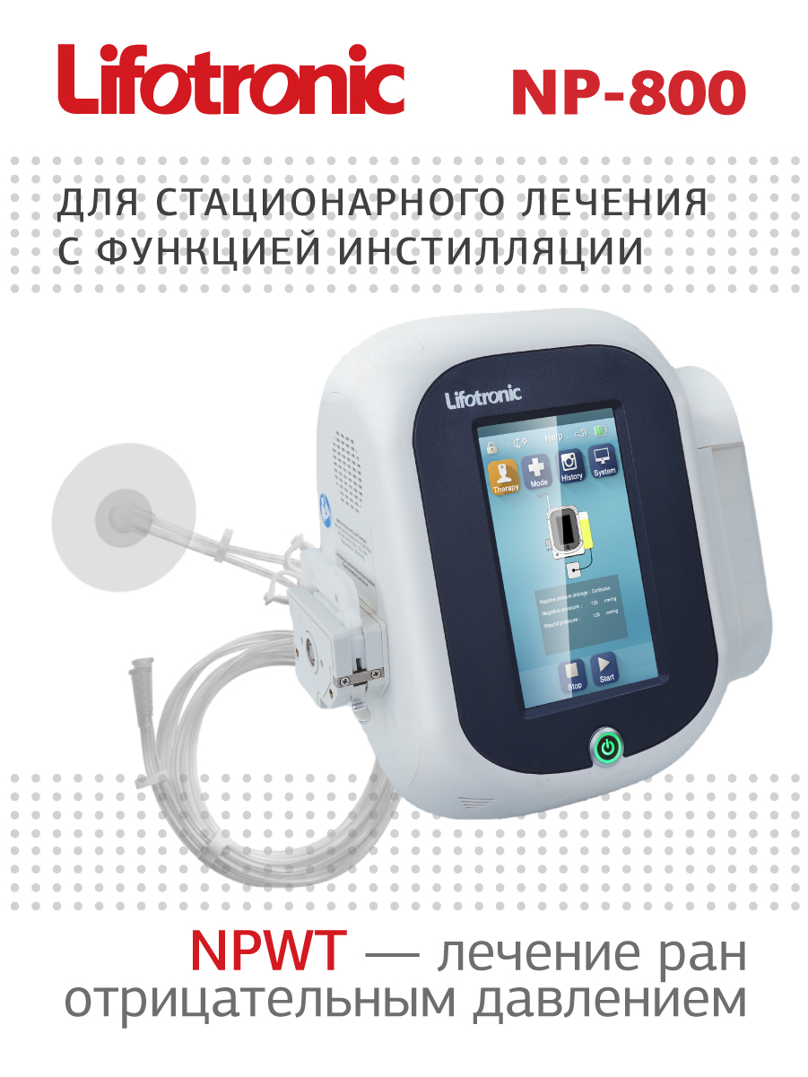• За счет особой конструкции двухходового порта аппарат определяет истинное значение отрицательного давления в самой ране.